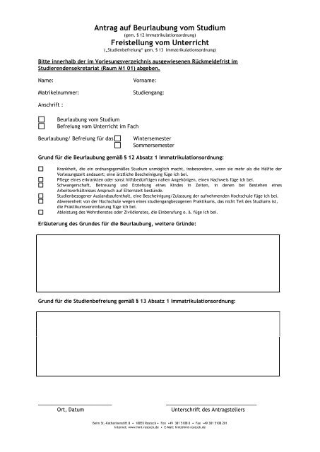 Antrag Auf Beurlaubung Vom Studium Hochschule Fur Musik Und