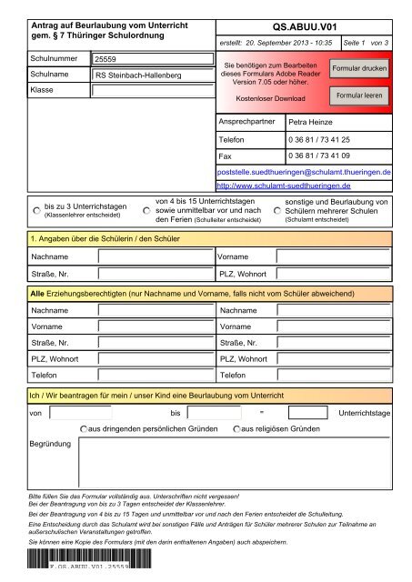 Antrag Auf Beurlaubung Vom Unterricht Rs Steinbach Hallenberg